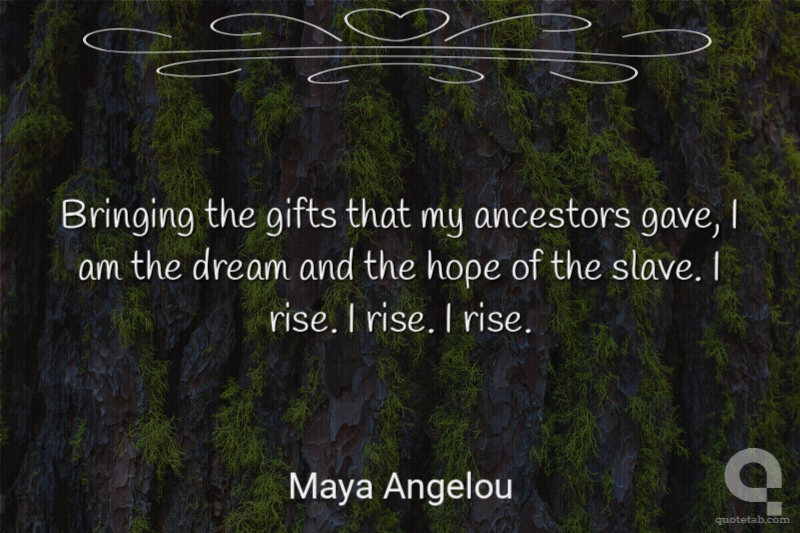 Bringing the gifts that my ancestors gave, I am the dream and the hope of the slave. I rise. I rise. I rise.
