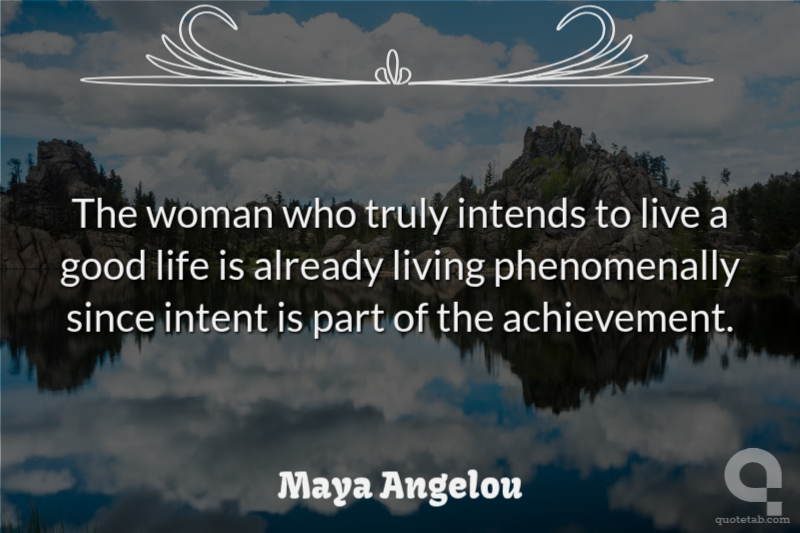 The woman who truly intends to live a good life is already living phenomenally since intent is part of the achievement.