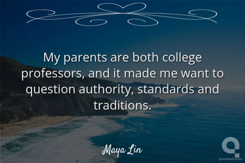 My parents are both college professors, and it made me want to question authority, standards and traditions.