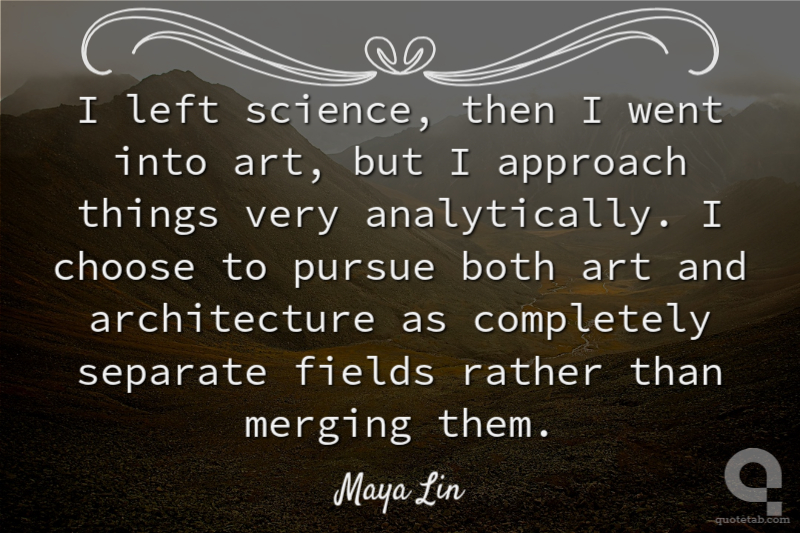 I left science, then I went into art, but I approach things very analytically. I choose to pursue both art and architecture as completely separate fields rather than merging them.