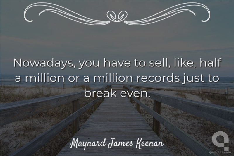 Nowadays, you have to sell, like, half a million or a million records just to break even.