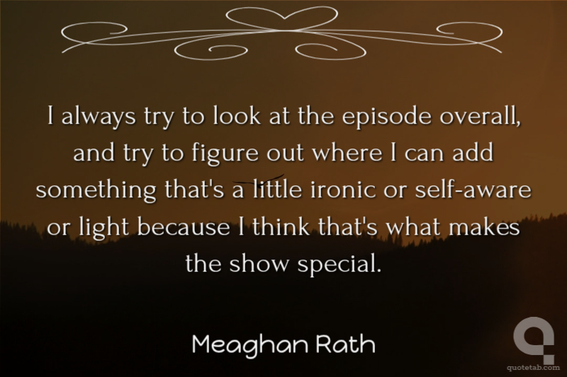 I always try to look at the episode overall, and try to figure out where I can add something that's a little ironic or self-aware or light because I think that's what makes the show special.