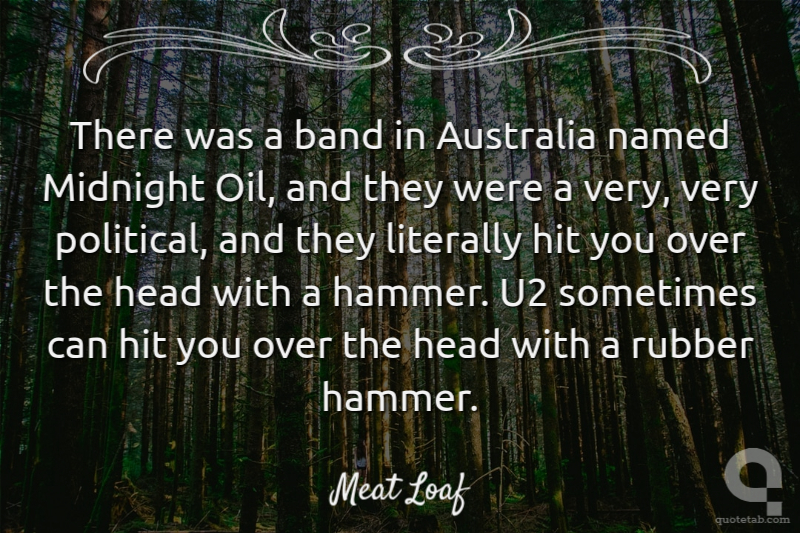 There was a band in Australia named Midnight Oil, and they were a very, very political, and they literally hit you over the head with a hammer. U2 sometimes can hit you over the head with a rubber hammer.