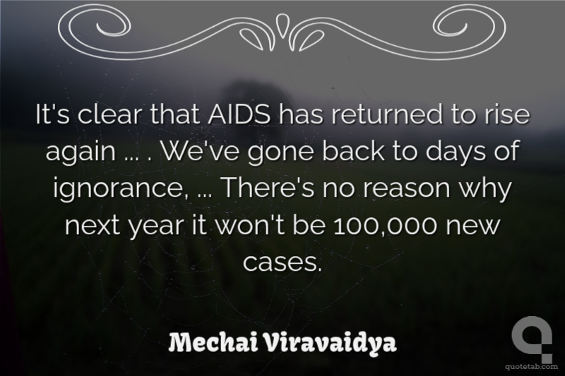 It's clear that AIDS has returned to rise again ... . We've gone back to days of ignorance, ... There's no reason why next year it won't be 100,000 new cases.
