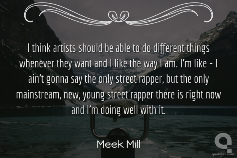 I think artists should be able to do different things whenever they want and I like the way I am. I'm like - I ain't gonna say the only street rapper, but the only mainstream, new, young street rapper there is right now and I'm doing well with it.