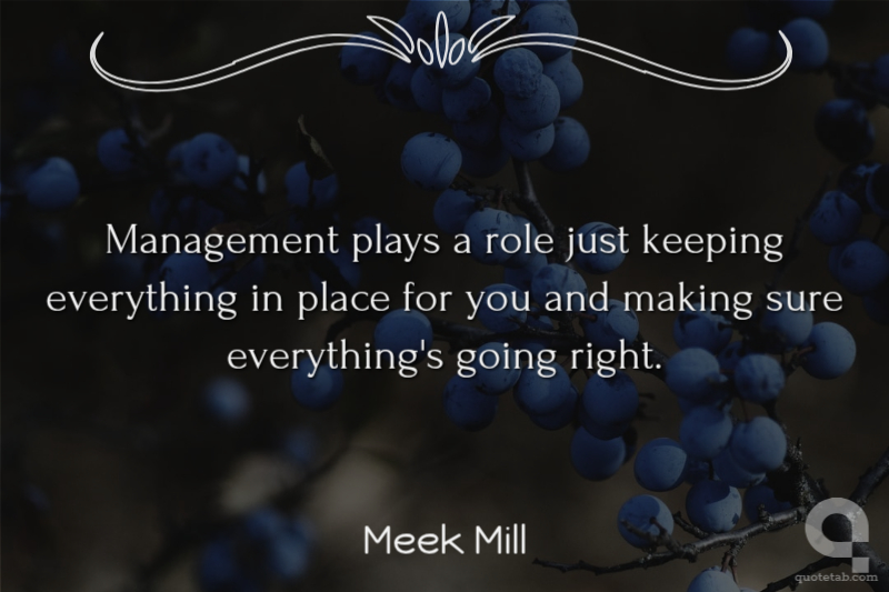 Management plays a role just keeping everything in place for you and making sure everything's going right.