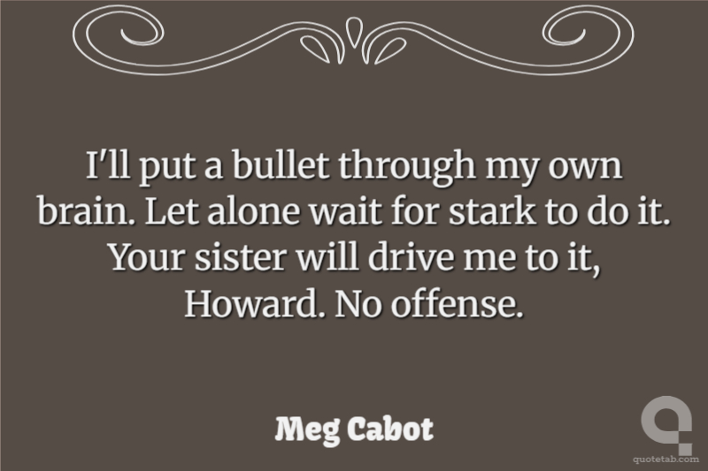 I'll put a bullet through my own brain. Let alone wait for stark to do it. Your sister will drive me to it, Howard. No offense.