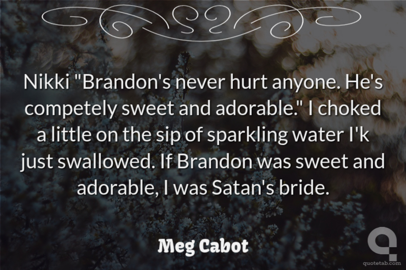 Nikki "Brandon's never hurt anyone. He's competely sweet and adorable." I choked a little on the sip of sparkling water I'k just swallowed. If Brandon was sweet and adorable, I was Satan's bride.