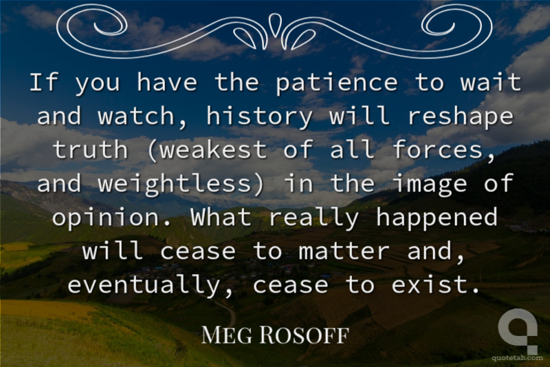 If you have the patience to wait and watch, history will reshape truth (weakest of all forces, and weightless) in the image of opinion. What really happened will cease to matter and, eventually, cease to exist.