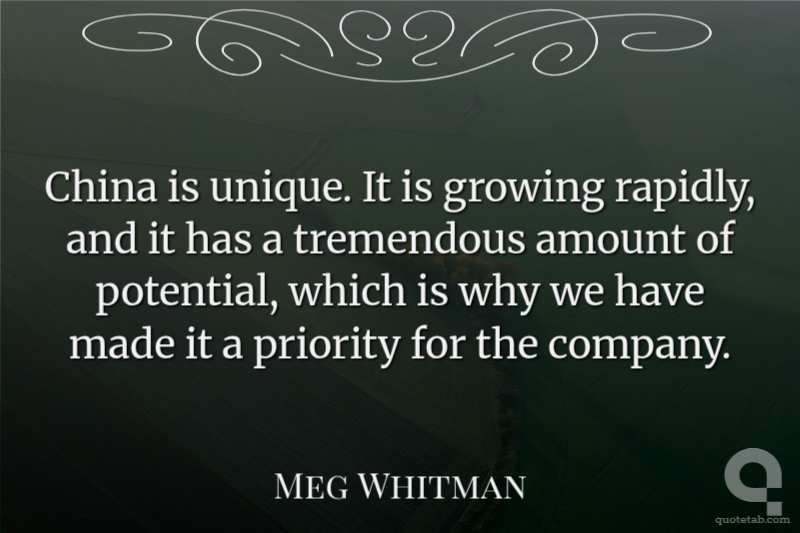 China is unique. It is growing rapidly, and it has a tremendous amount of potential, which is why we have made it a priority for the company.