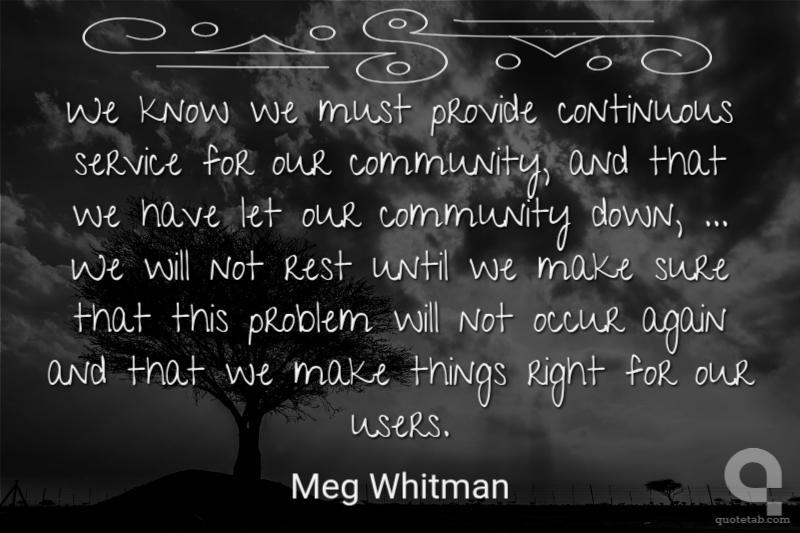 We know we must provide continuous service for our community, and that we have let our community down, ... We will not rest until we make sure that this problem will not occur again and that we make things right for our users.