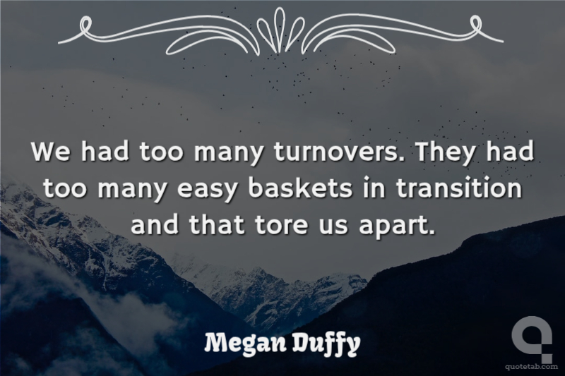 We had too many turnovers. They had too many easy baskets in transition and that tore us apart.