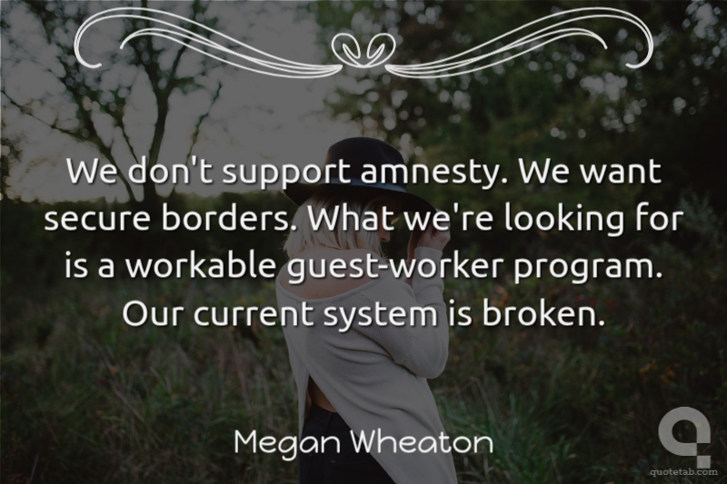 We don't support amnesty. We want secure borders. What we're looking for is a workable guest-worker program. Our current system is broken.