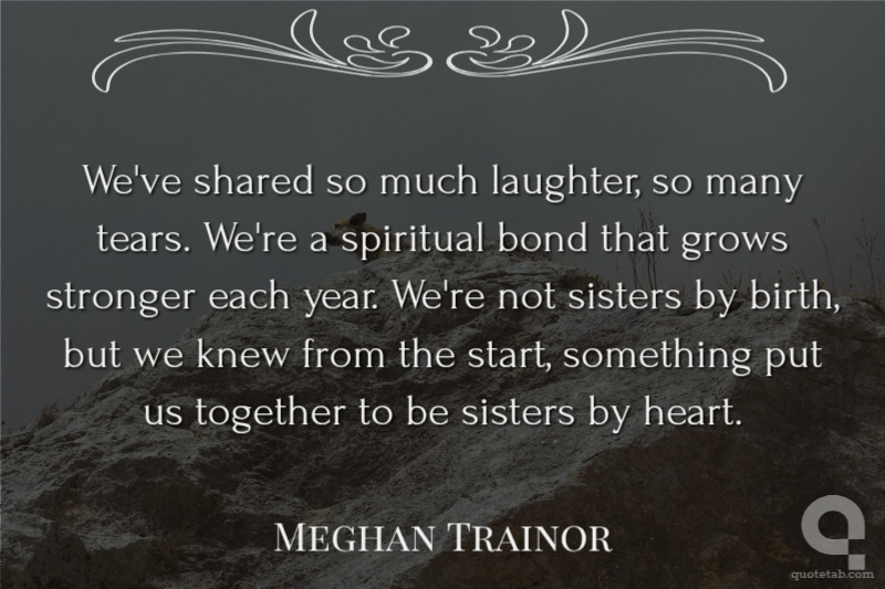 We've shared so much laughter, so many tears. We're a spiritual bond that grows stronger each year. We're not sisters by birth, but we knew from the start, something put us together to be sisters by heart.
