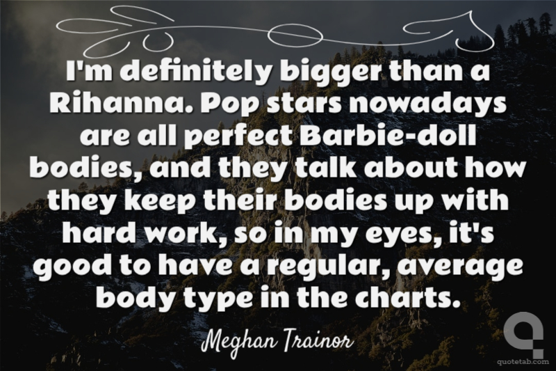 I'm definitely bigger than a Rihanna. Pop stars nowadays are all perfect Barbie-doll bodies, and they talk about how they keep their bodies up with hard work, so in my eyes, it's good to have a regular, average body type in the charts.