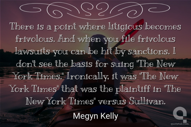 There is a point where litigious becomes frivolous. And when you file frivolous lawsuits you can be hit by sanctions. I don't see the basis for suing "The New York Times." Ironically, it was "The New York Times" that was the plaintiff in "The New York Times" versus Sullivan.