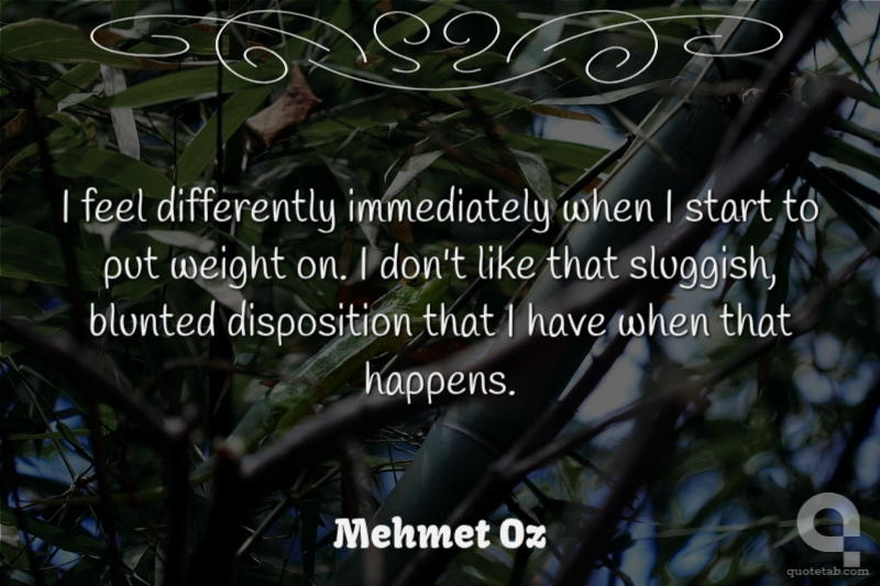 I feel differently immediately when I start to put weight on. I don't like that sluggish, blunted disposition that I have when that happens.