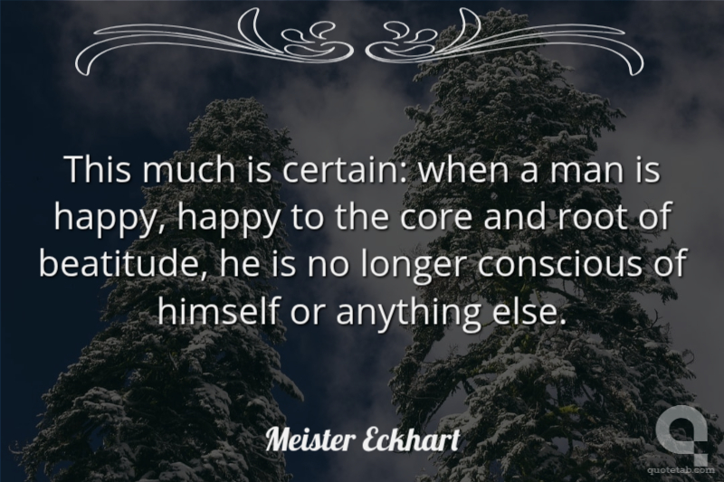 This much is certain: when a man is happy, happy to the core and root of beatitude, he is no longer conscious of himself or anything else.