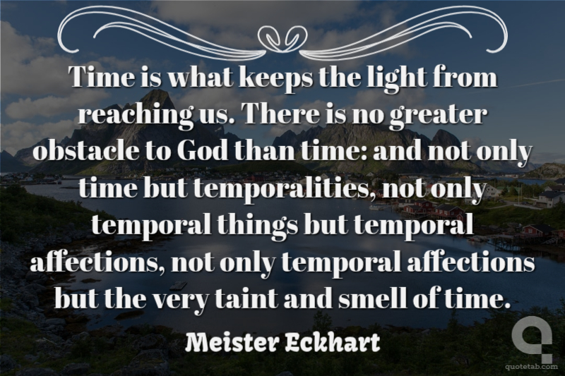 Time is what keeps the light from reaching us. There is no greater obstacle to God than time: and not only time but temporalities, not only temporal things but temporal affections, not only temporal affections but the very taint and smell of time.