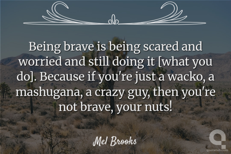 Being brave is being scared and worried and still doing it [what you do]. Because if you're just a wacko, a mashugana, a crazy guy, then you're not brave, your nuts!