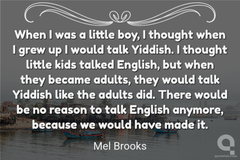 When I was a little boy, I thought when I grew up I would talk Yiddish. I thought little kids talked English, but when they became adults, they would talk Yiddish like the adults did. There would be no reason to talk English anymore, because we would have made it.
