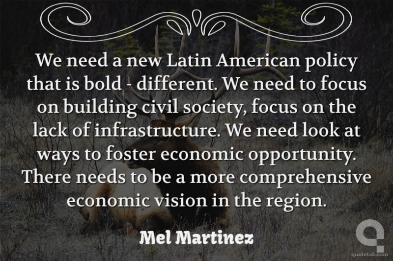 We need a new Latin American policy that is bold - different. We need to focus on building civil society, focus on the lack of infrastructure. We need look at ways to foster economic opportunity. There needs to be a more comprehensive economic vision in the region.