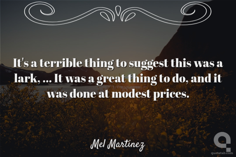 It's a terrible thing to suggest this was a lark, ... It was a great thing to do, and it was done at modest prices.