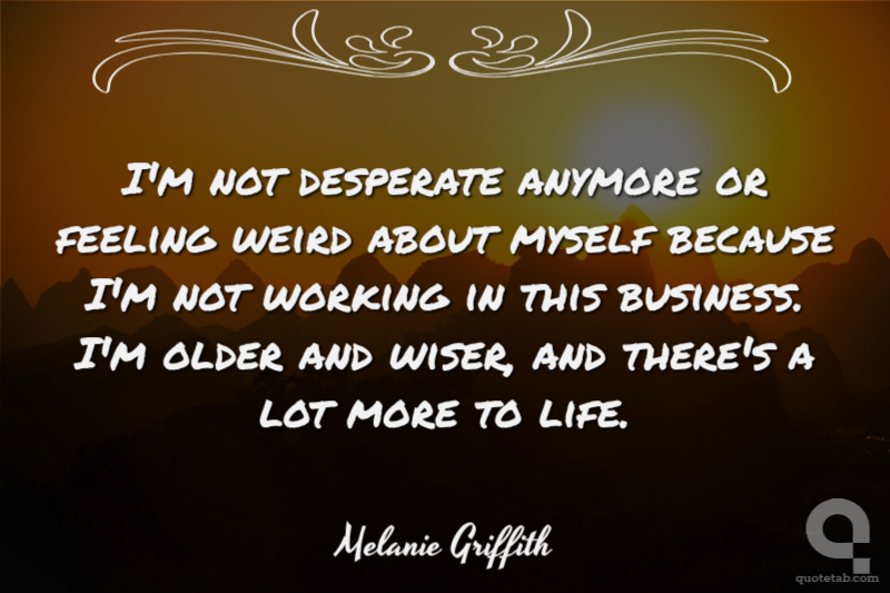 I'm not desperate anymore or feeling weird about myself because I'm not working in this business. I'm older and wiser, and there's a lot more to life.