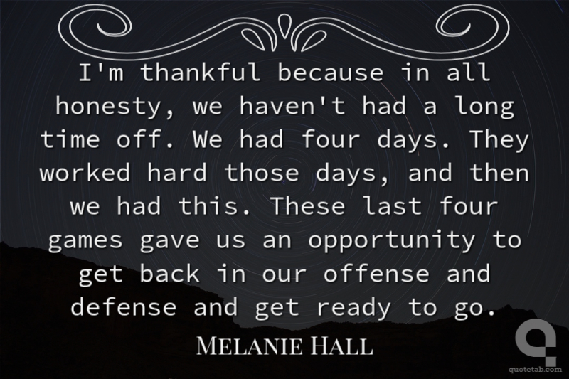 I'm thankful because in all honesty, we haven't had a long time off. We had four days. They worked hard those days, and then we had this. These last four games gave us an opportunity to get back in our offense and defense and get ready to go.