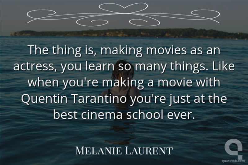 The thing is, making movies as an actress, you learn so many things. Like when you're making a movie with Quentin Tarantino you're just at the best cinema school ever.