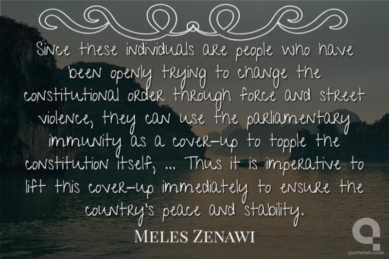 Since these individuals are people who have been openly trying to change the constitutional order through force and street violence, they can use the parliamentary immunity as a cover-up to topple the constitution itself, ... Thus it is imperative to lift this cover-up immediately to ensure the country's peace and stability.