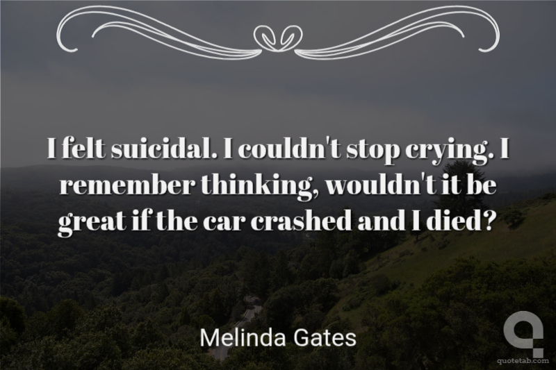 I felt suicidal. I couldn't stop crying. I remember thinking, wouldn't it be great if the car crashed and I died?