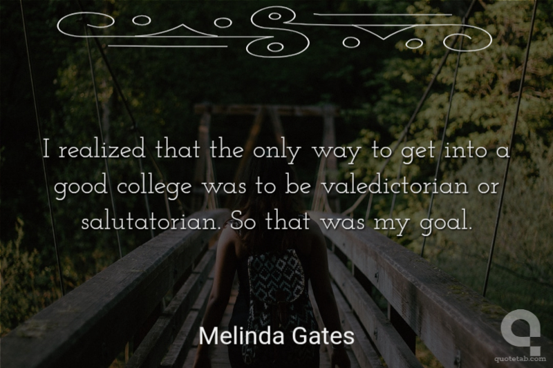 I realized that the only way to get into a good college was to be valedictorian or salutatorian. So that was my goal.
