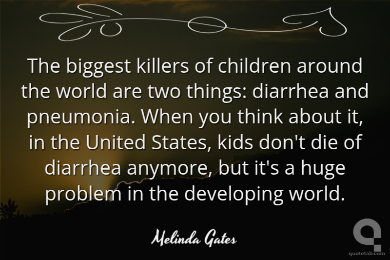 The biggest killers of children around the world are two things: diarrhea and pneumonia. When you think about it, in the United States, kids don't die of diarrhea anymore, but it's a huge problem in the developing world.