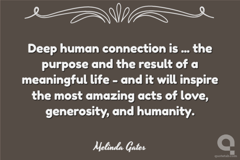 Deep human connection is ... the purpose and the result of a meaningful life - and it will inspire the most amazing acts of love, generosity, and humanity.