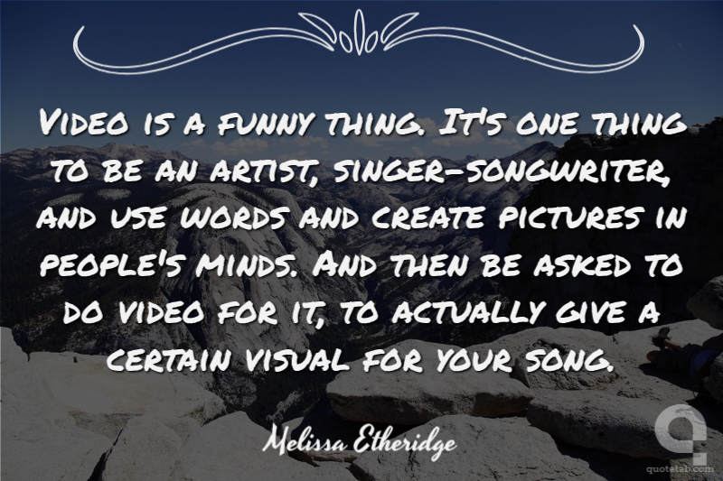 Video is a funny thing. It's one thing to be an artist, singer-songwriter, and use words and create pictures in people's minds. And then be asked to do video for it, to actually give a certain visual for your song.