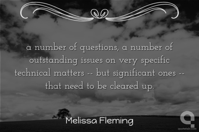 a number of questions, a number of outstanding issues on very specific technical matters -- but significant ones -- that need to be cleared up.