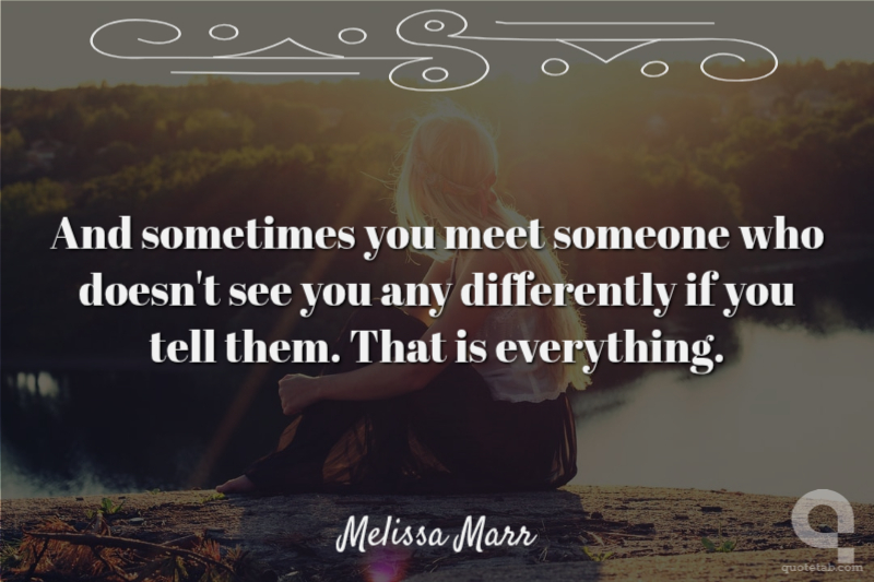And sometimes you meet someone who doesn't see you any differently if you tell them. That is everything.