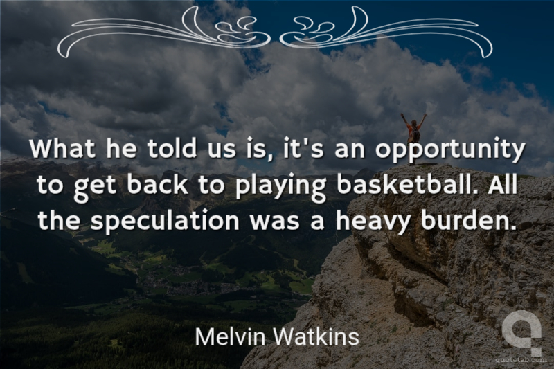 What he told us is, it's an opportunity to get back to playing basketball. All the speculation was a heavy burden.