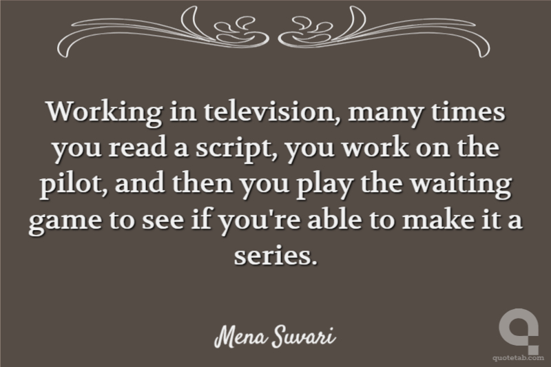 Working in television, many times you read a script, you work on the pilot, and then you play the waiting game to see if you're able to make it a series.