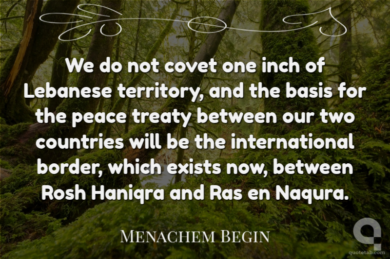 We do not covet one inch of Lebanese territory, and the basis for the peace treaty between our two countries will be the international border, which exists now, between Rosh Haniqra and Ras en Naqura.