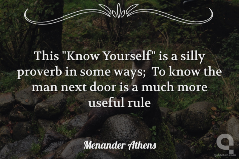 This "Know Yourself" is a silly proverb in some ways; To know the man next door is a much more useful rule