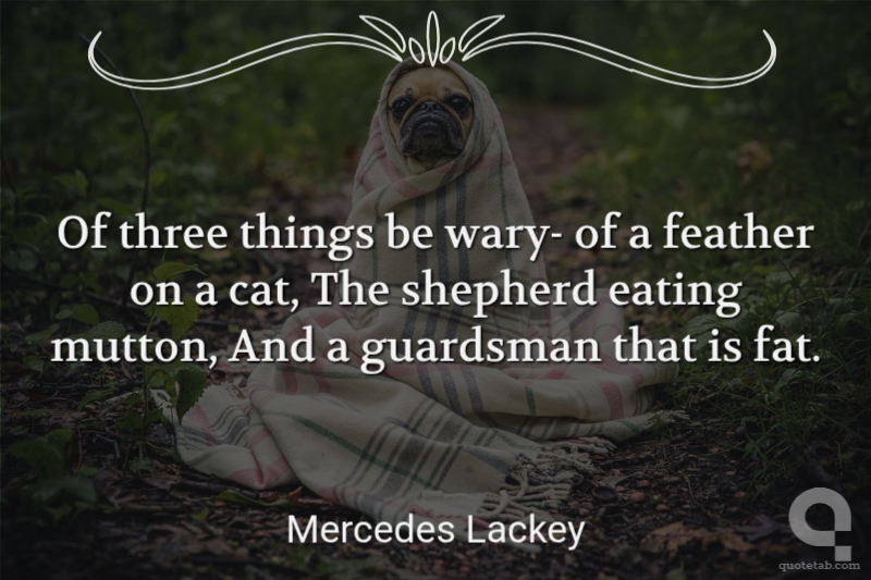 Of three things be wary- of a feather on a cat, The shepherd eating mutton, And a guardsman that is fat.