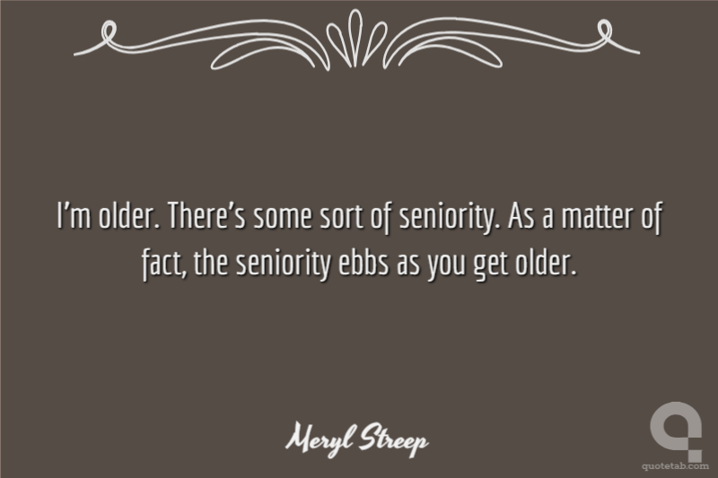 I'm older. There's some sort of seniority. As a matter of fact, the seniority ebbs as you get older.