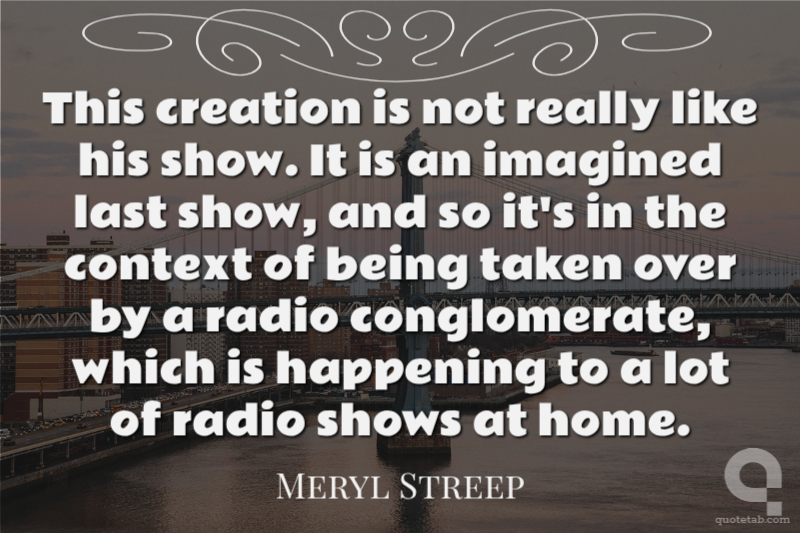 This creation is not really like his show. It is an imagined last show, and so it's in the context of being taken over by a radio conglomerate, which is happening to a lot of radio shows at home.
