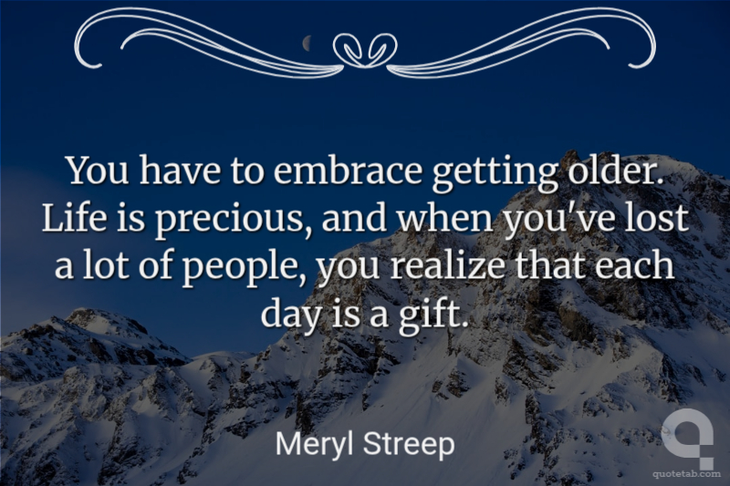 You have to embrace getting older. Life is precious, and when you've lost a lot of people, you realize that each day is a gift.