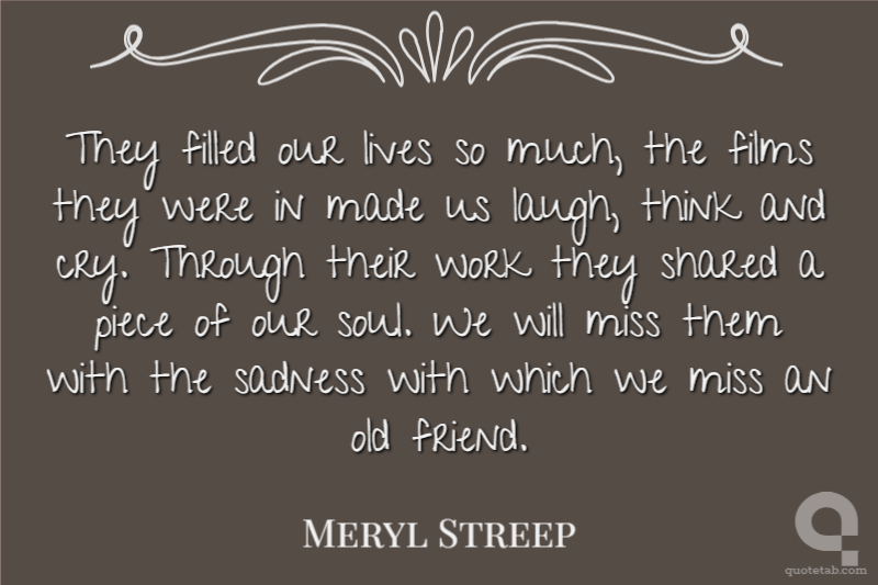 They filled our lives so much, the films they were in made us laugh, think and cry. Through their work they shared a piece of our soul. We will miss them with the sadness with which we miss an old friend.