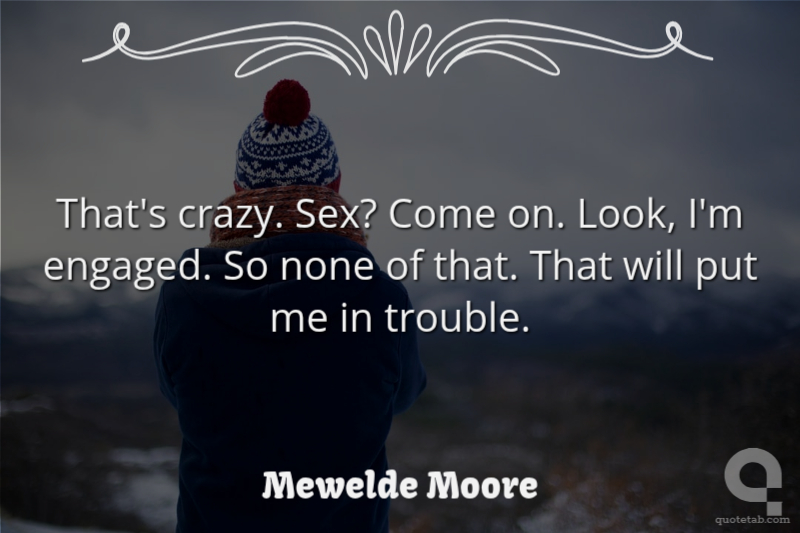 That's crazy. Sex? Come on. Look, I'm engaged. So none of that. That will put me in trouble.