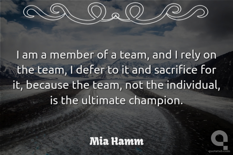 I am a member of a team, and I rely on the team, I defer to it and sacrifice for it, because the team, not the individual, is the ultimate champion.