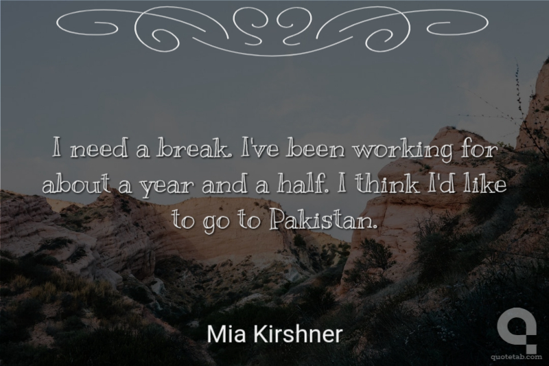 I need a break. I've been working for about a year and a half. I think I'd like to go to Pakistan.